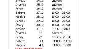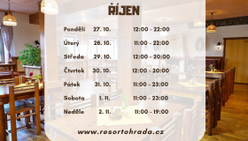 Otevírací doba v týdnu 27. 10. - 2. 11. 2025